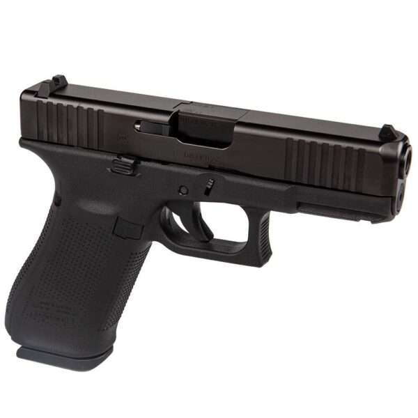 Le G45 présente tous les éléments de la cinquième génération de pistolets GLOCK, tels qu’une détente plus douce, un traitement de surface du corps amélioré pour une meilleure prise en main, un arrêtoir de chargeur ambidextre, un arrêtoir de culasse ambidextre, un système MBS pour un réglage individuel et un canon GLOCK GMB de haute précision